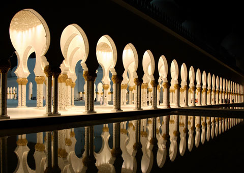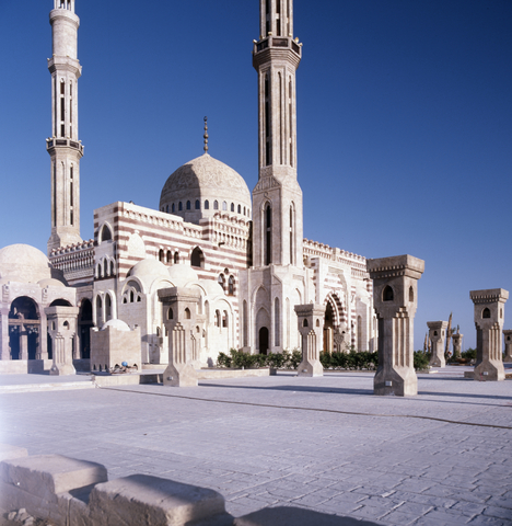 Zu Zeiten des Propheten war die Moschee in Medina aus rohen Ziegeln gebaut und ihr Dach mit Palmwedeln bedeckt. Später wurde sie erweitert und unter Usman bestanden die Wände schließlich aus Stein und Mörtel und das Dach aus Teakholz (Buchari 8:62), war also immer noch einfach gehalten. Der Prophet sagte: "Mir wurde nicht aufgetragen, die Moscheen zu dekorieren".(Ad-Msh 4:7)