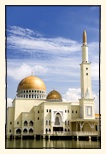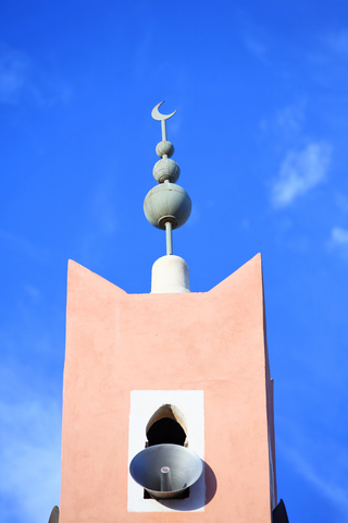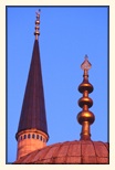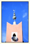 Gelegentlich findet man auf dem Minarett der Moschee eine Mondsichel, allerdings ist der Halbmond gar kein islamisches Symbol. Die Osmanen haben ihn von den Römern übernommen; er war das Nationalsymbol des byzantinischen Reiches und läßt sich auf heidnische Kulte zurückführen. Der Halbmond hat genausowenig wie jegliche anderen Symbole oder Flaggen irgendetwas in Moscheen oder auf Minaretten zu suchen.