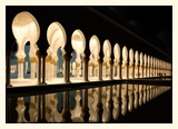 Minarett (vom arabischen Wort "minara") bedeutet eigentlich "Ort des Lichts" bzw. "Ort des Feuers"; es ist ein Teil einer Moschee, der ähnlich wie ein Leuchtturm durch ein oben angezündetes Licht in dunkler Nacht den Weg erkennen lässt. Darin liegt auch eine Symbolik: Am Minarett erkennt der suchende Mensch auch die Moschee, den Ort der Rechtleitung inmitten der Dunkelheiten und des Irregehens. Denn von diesem Minarett aus, das auch heute noch nachts beleuchtet ist, ruft der Muezzin zum Gebet, und jedes Gebet, das ein Muslim verrichtet, schließt die Bitte um Rechtleitung und um Schutz vor dem Irregehen ein: "Führe uns auf dem rechten Weg, den Weg derer, denen Du Gnade erwiesen hast und die nicht irre gegangen sind." (1:5-7). Während bei anderen Gebetsstätten die Zeit für den Gottesdienst mit Hilfe bestimmter Instrumente wie dem Glockenläuten bekannt gemacht wird, benutzt man im Islam hierzu die einfachste Möglichkeit, die der Mensch zur Verfügung hat: Die menschliche Stimme.